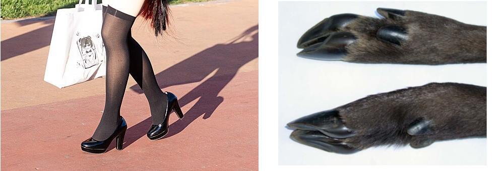 kuva https://commons.wikimedia.org/wiki/File:Black_high_heels_and_knee_stockings_(20241019161234).jpg kuva 2 https://commons.wikimedia.org/wiki/File:Capreolus_capreolus_cloven_hoof.jpg